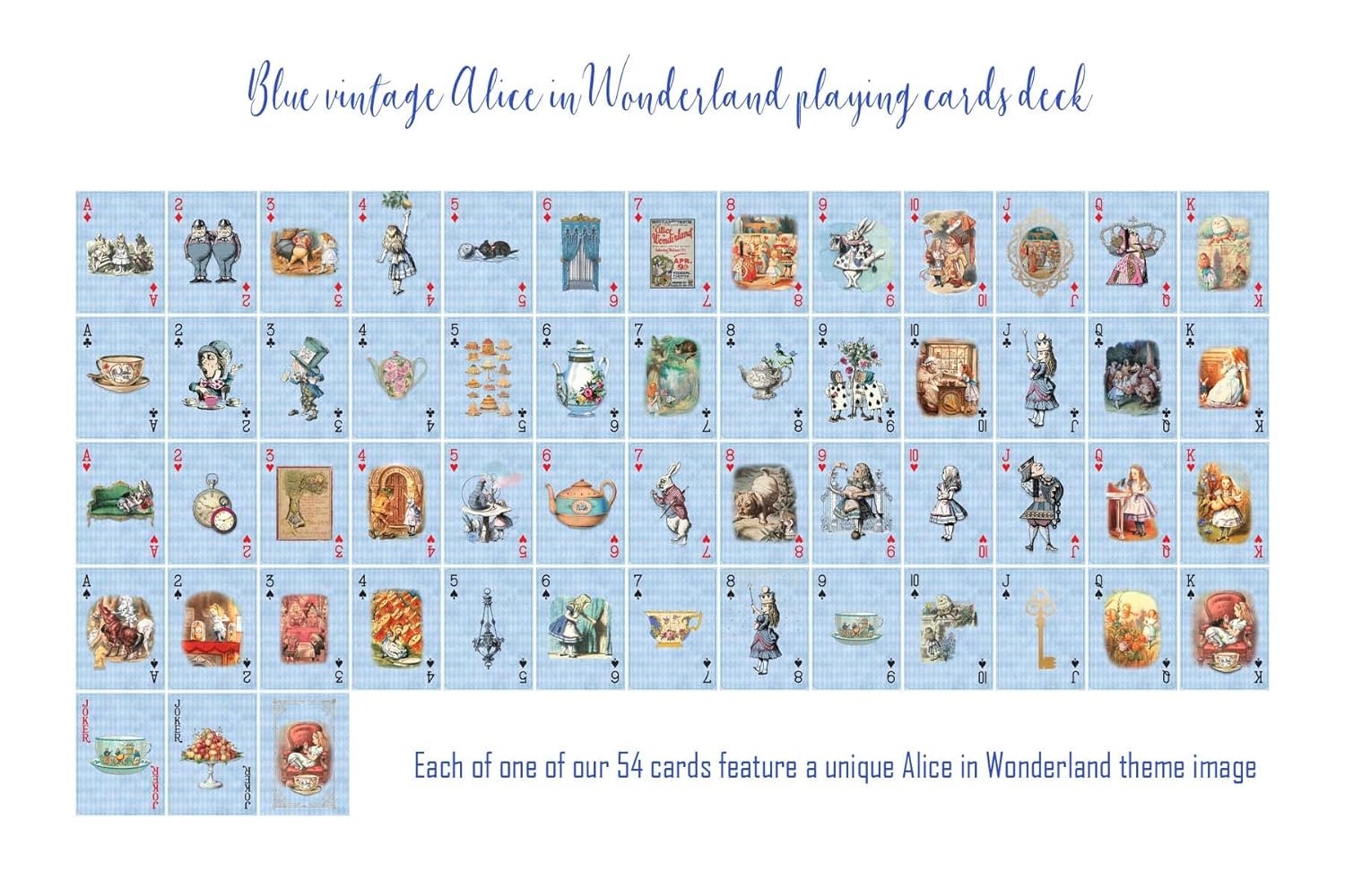 Alice's Adventures in Wonderland Playing Cards Deck of 54 Unique Cards. (Blue)