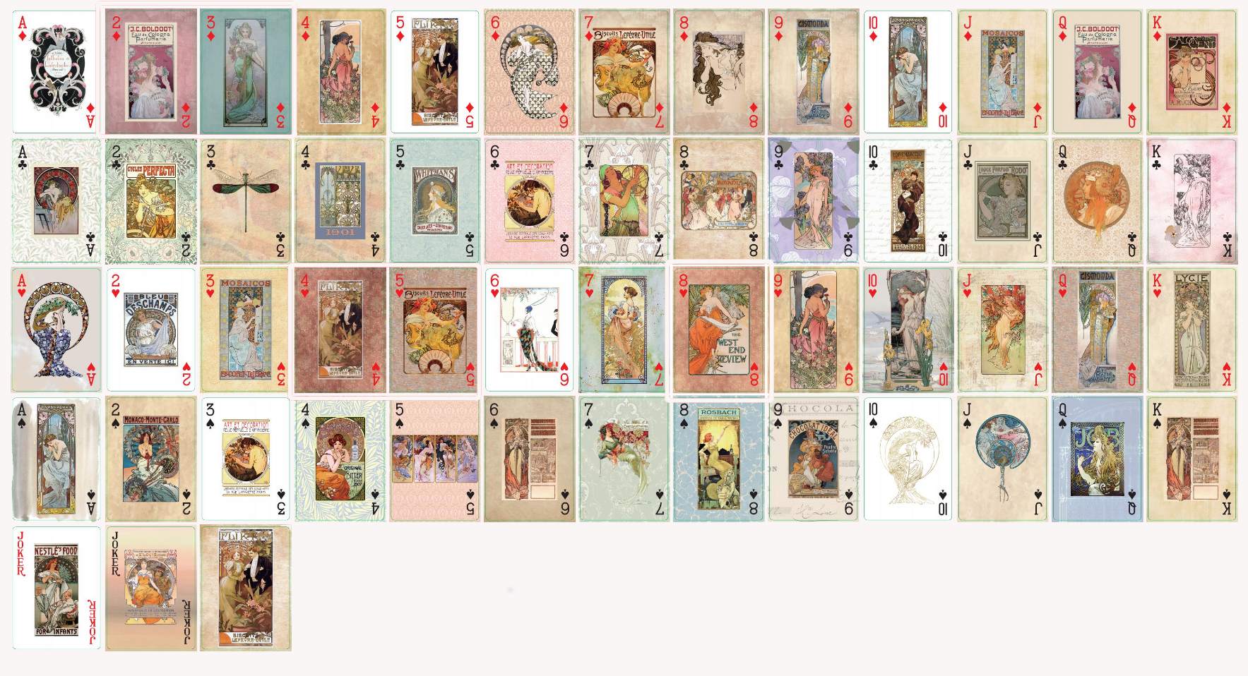 Art Nouveau Poker Cards, 54 Vintage Playing Cards with Illustrations from artist, Alphonse Mucha