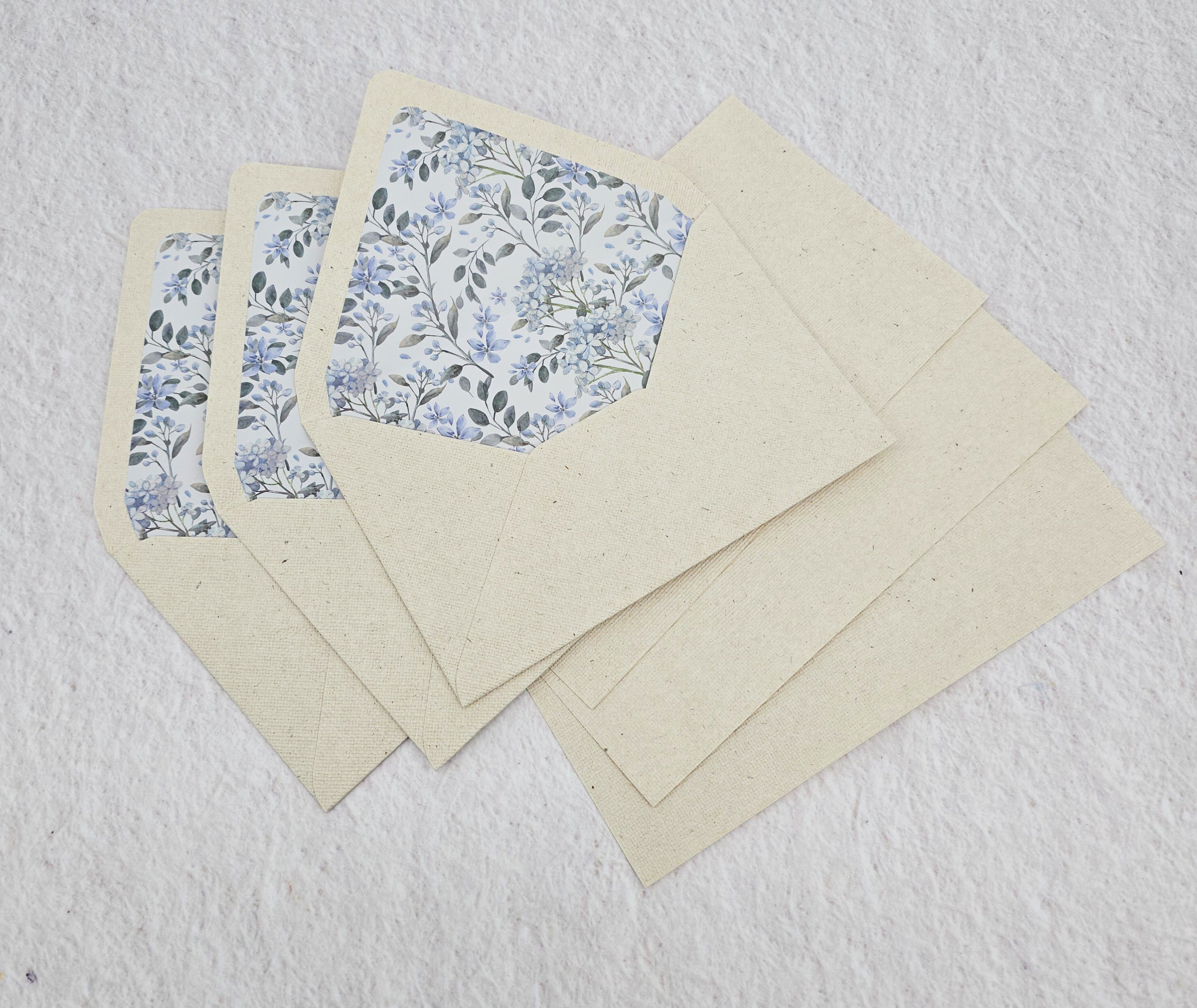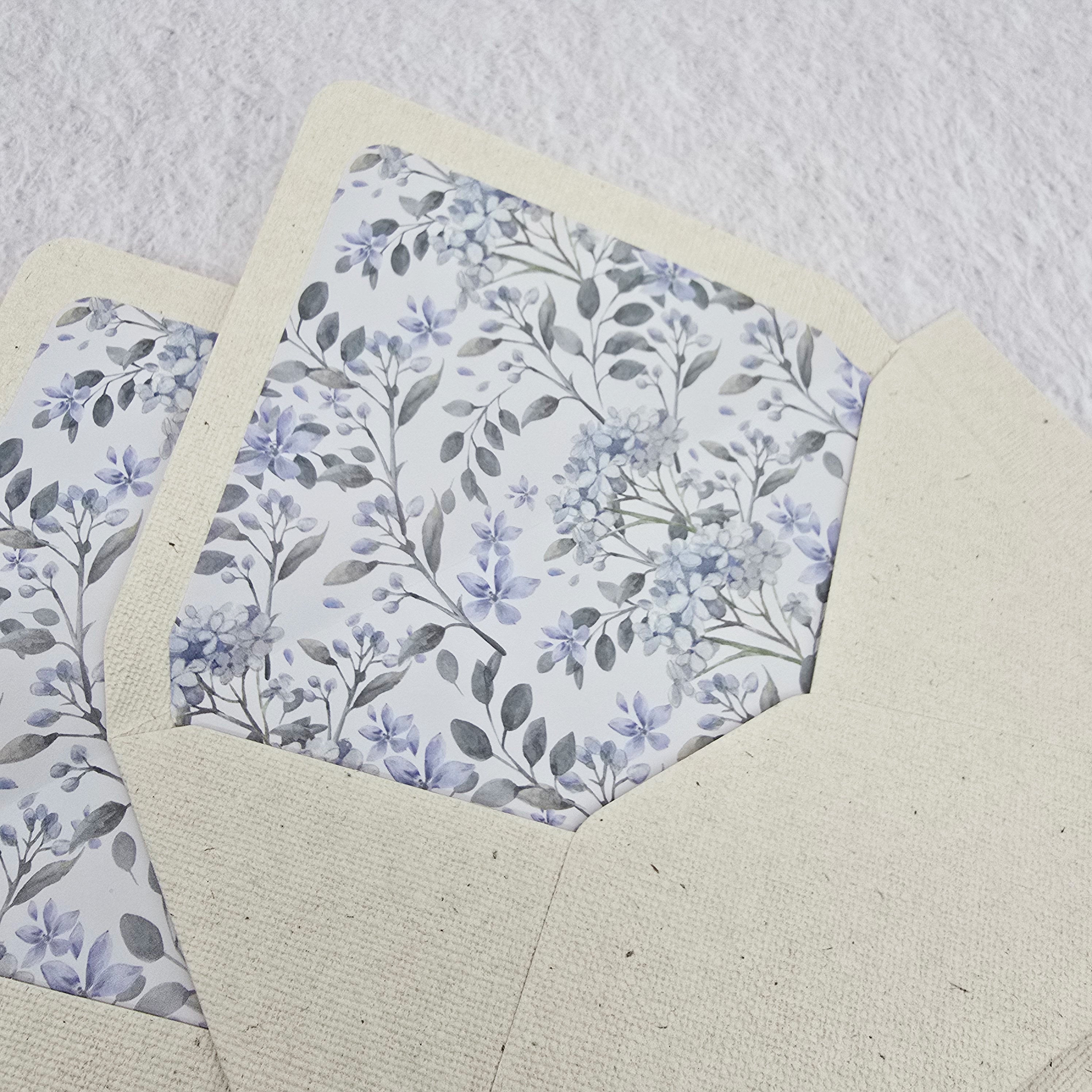 Linen textured card paper and envelope with blue hydrangea flowers print lining ( Set of 3 )