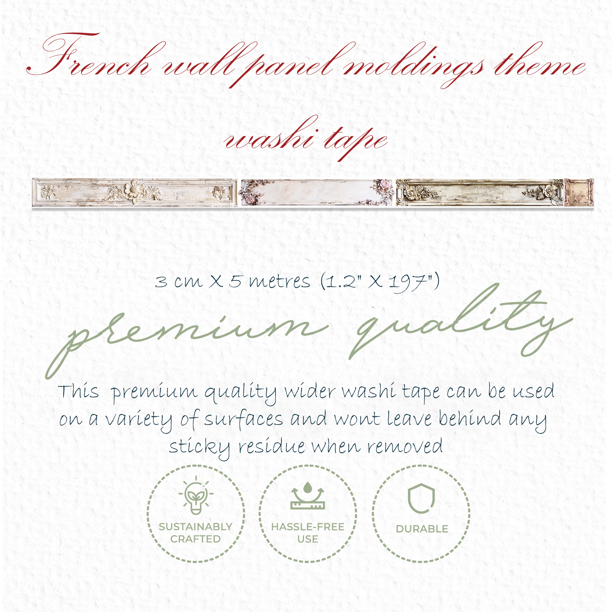 This washi tape measures : 3 cm X 5 metres (1.2" X 197")