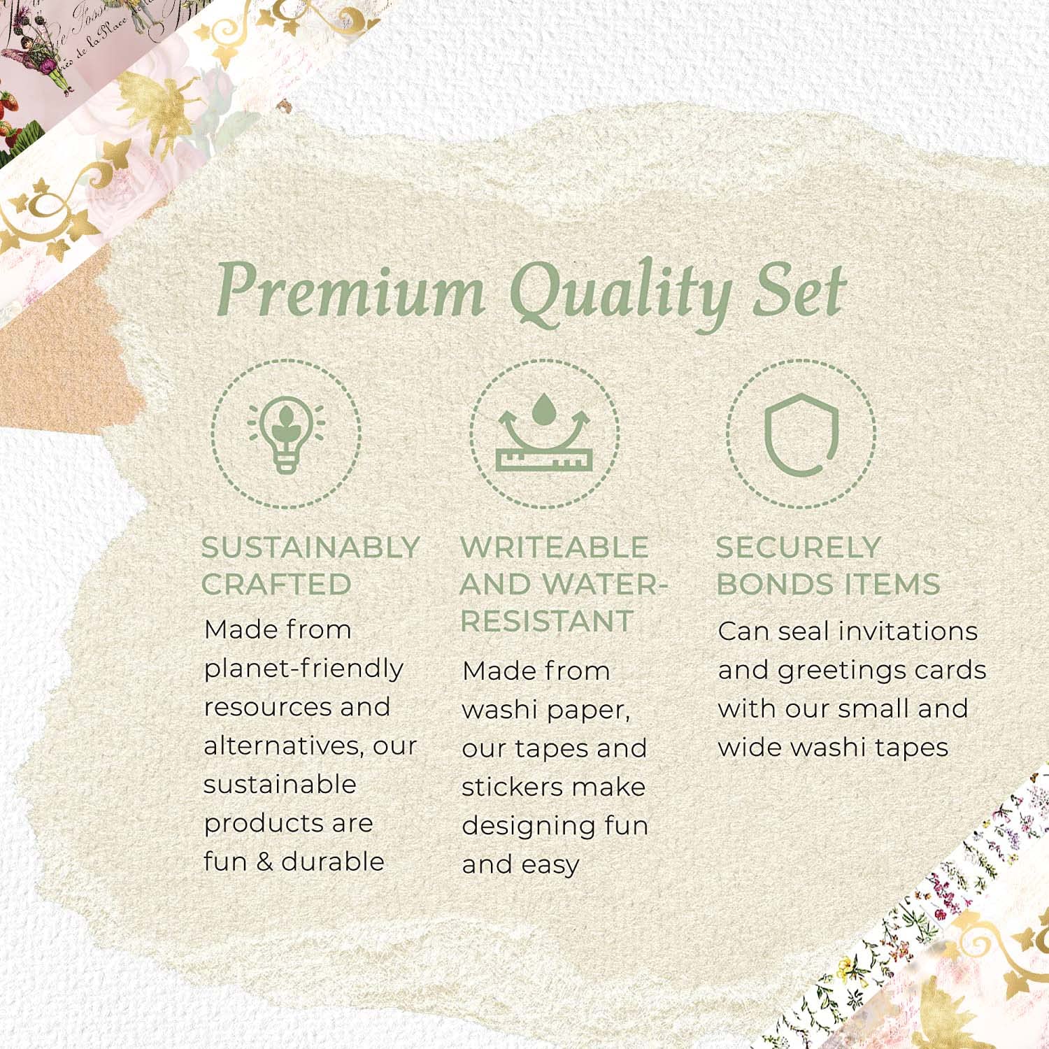 ✨Our high-quality washi tapes are durable but still easy to tear, waterproof, writeable, and the application is made with a secure bond. Any wrinkles or creases can be smoothed out by hand, and it can be used on a variety of surfaces without leaving any stickiness behind.