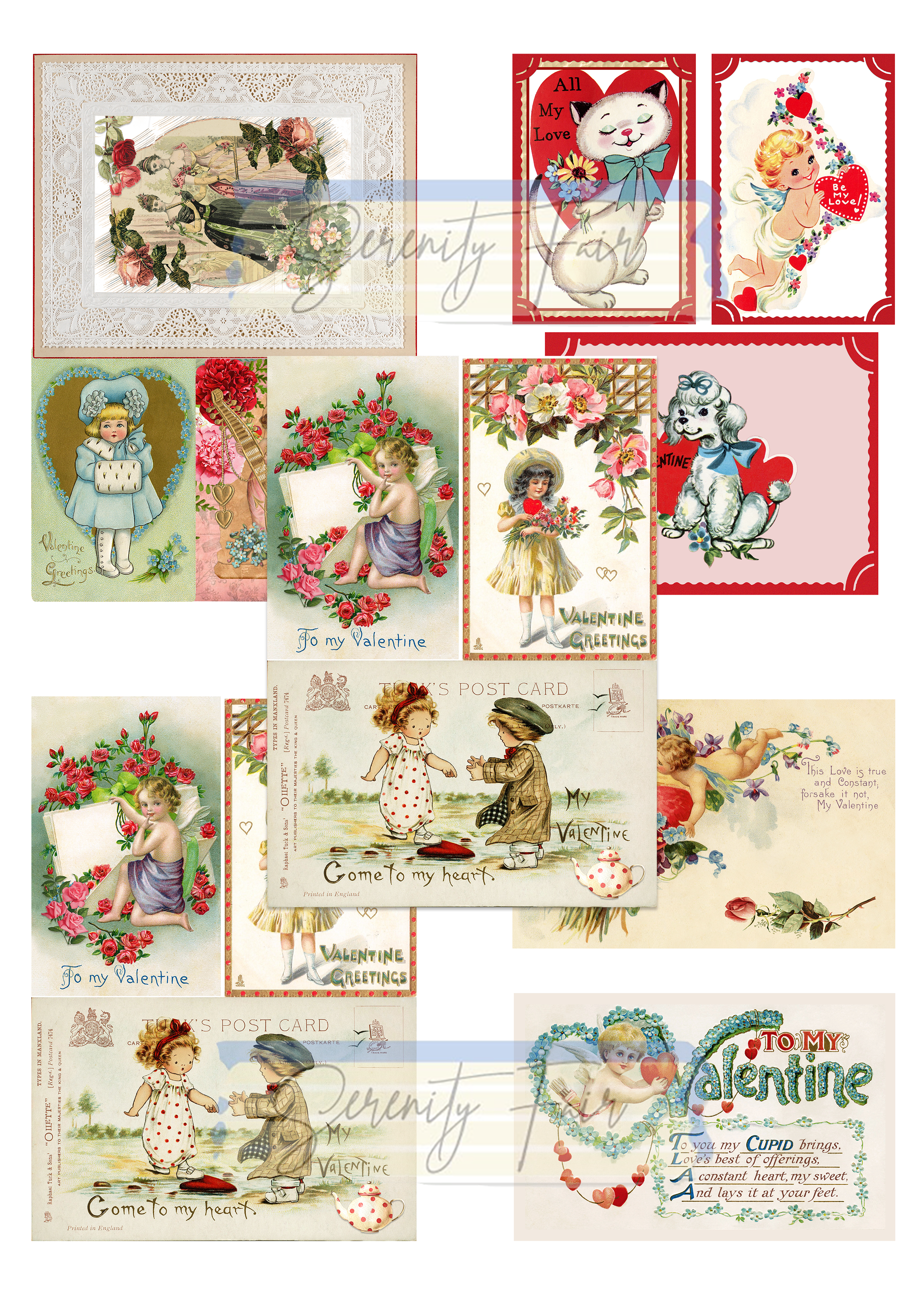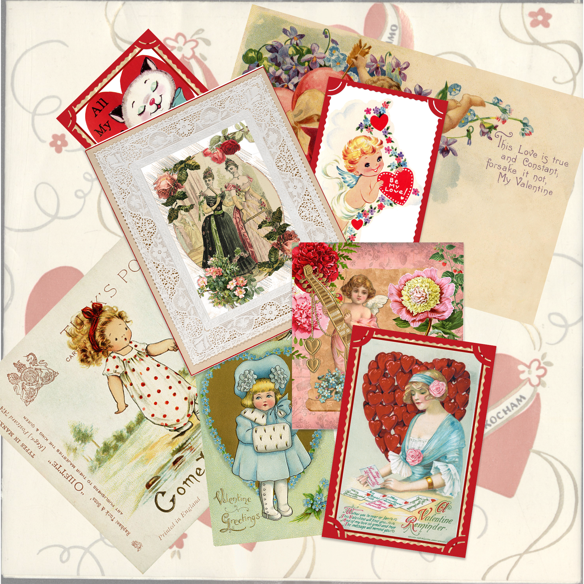 Infuse your creative projects with timeless charm using this set of vintage Valentine's Day cards from the Victorian era to the 1940's